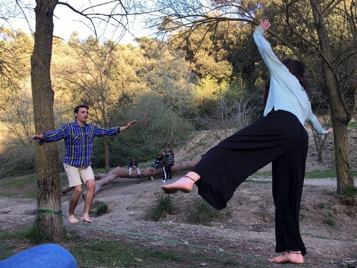 - Probando el Slack Line con todo el equipo completo (voluntarios + La Vibria team), día de la Calçotada catalana también!