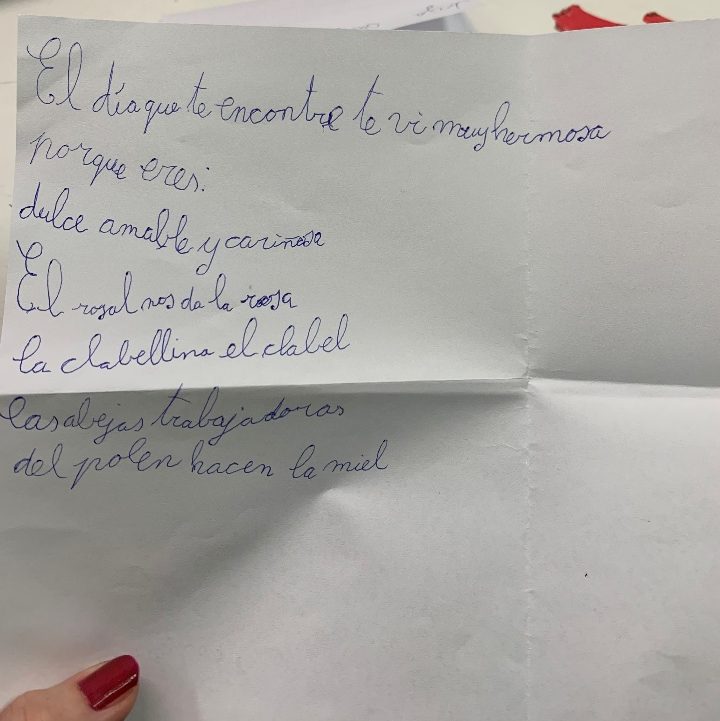 Algunos son muy dulces, como Ramón, que siempre me cuenta su vida y sobre todo siempre me escribe poemas, ¡como este de la foto!