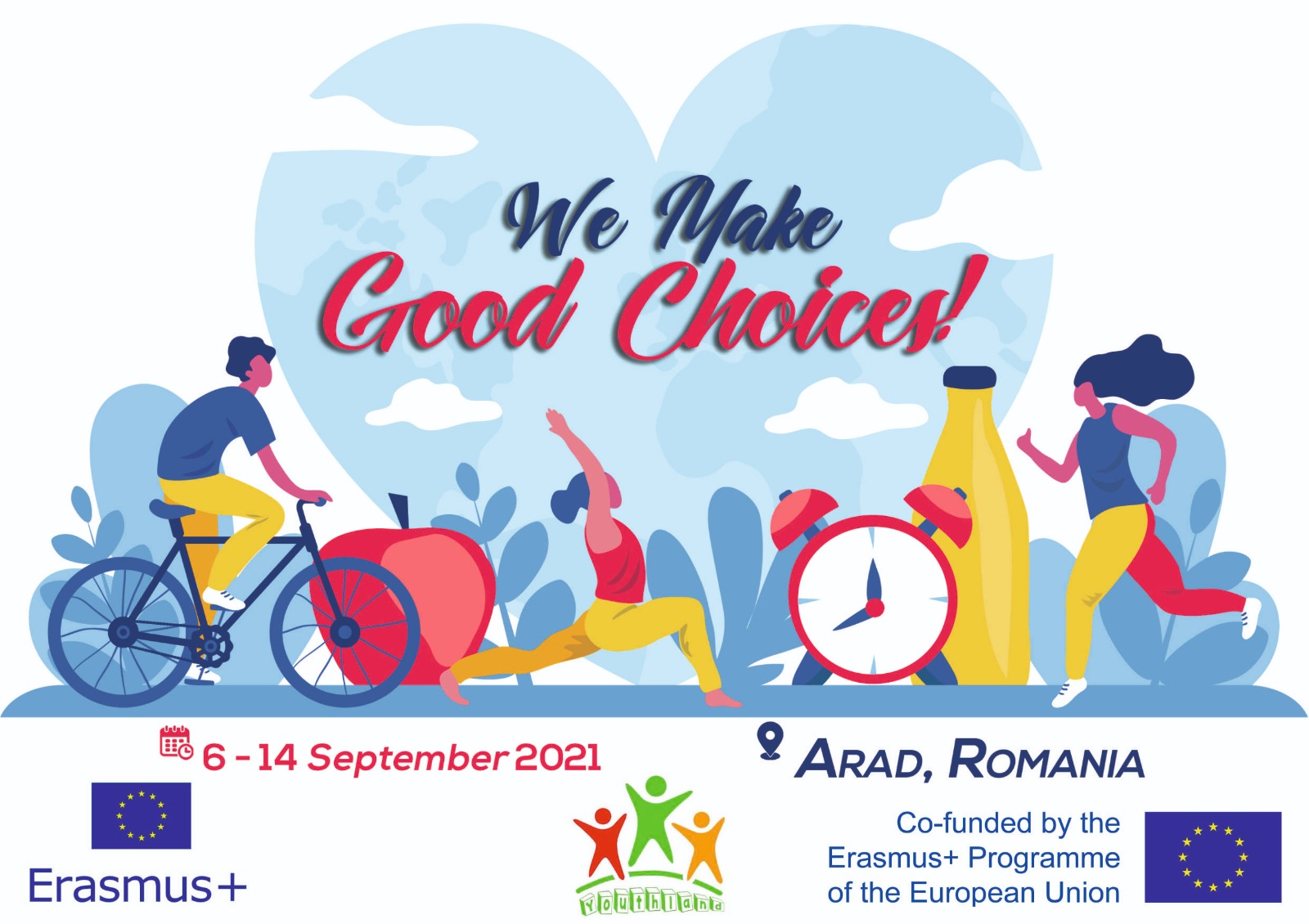Del 6 al 14 de setembre, la Laia Ruiz, la Júlia, l’Albert, la Marina i la Laia Beltrà, vam formar part de l’intercanvi juvenil “We Make Good Choices” a Arad (Romania). El fil conductor del projecte era el fet de prendre bones decisions en diferents àmbits de la nostra vida: cos, ment i medi ambient. YouthLand, l’associació de rebuda, va acollir participants de cinc països diferents: Bulgària, Portugal, Xipre, Turquia i nosaltres.