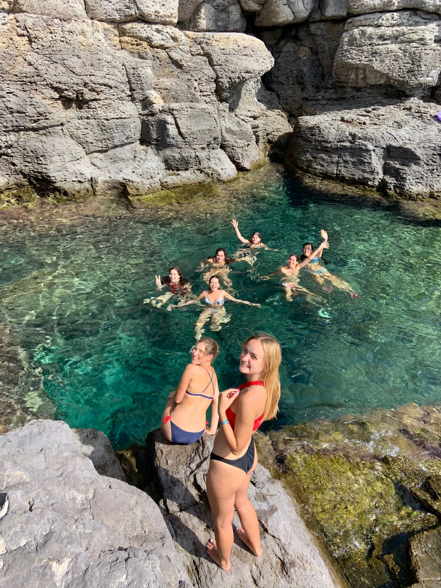 Estàvem allotjats a un camping davant d’una cala super bonica, on vam poder fer gran part de les activitats a l’aire lliure o amb unes vistes envidiables. Allà vam compartir tot allò sobre els nostres recursos naturals i culturals a cadascun dels nostres països. Era especialment interessant que els participants italians eren de Sardenya, els portuguesos venien de Madeira (una illa) i molts dels grecs també venien de illes. El focus va estar en totes les oportunitats a crear a una illa quan els turistes no hi són.