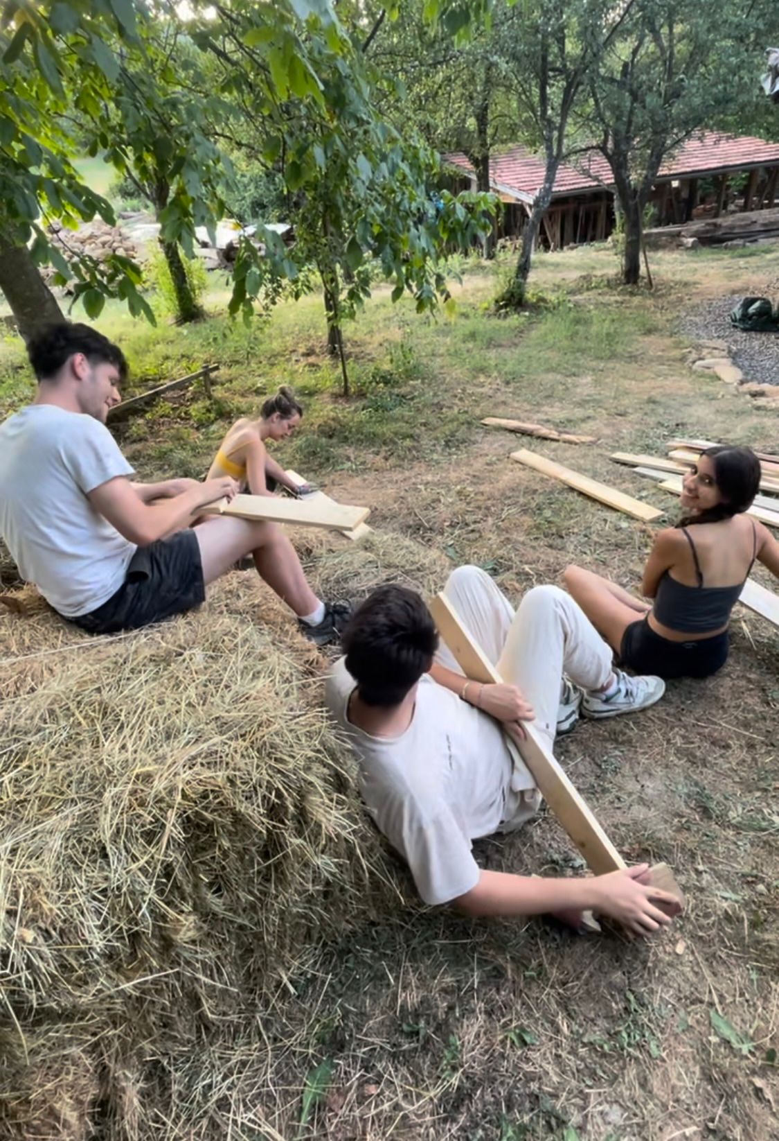 En arribar, ens vam centrar a conèixer l’entorn i la cultura que envolta la població, així com a fer els primers passos en el treball amb fusta, ja que tot el que realitzarem posteriorment seria amb aquest material per tal de promoure la sostenibilitat i aprofitar els recursos disponibles. Cal destacar un altre aspecte del lloc on ens allotjàvem: la majoria dels espais i cases eren construïts amb materials respectuosos amb el medi ambient o bé havien estat creats per altres voluntaris que havien passat per allà abans. D’aquesta manera, essent allà, es podia veure tot l’esforç dedicat per part de tots els voluntaris que havien passat per allà, i sobretot per part de l’organització de GAIA.