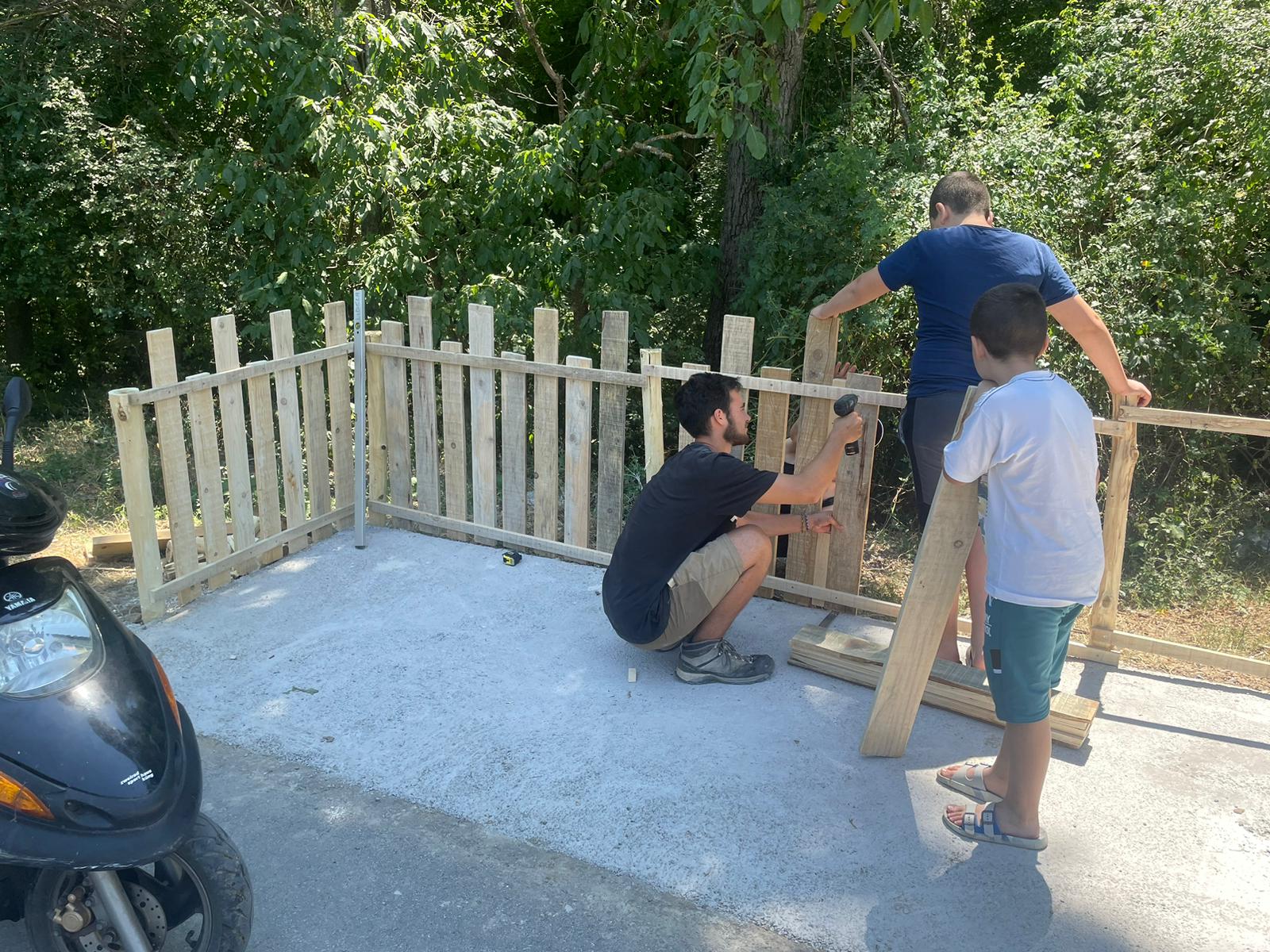 En tornar a GAIA, l’objectiu del projecte era acabar construint un espai de reunió per als veïns de Rajanovce. No obstant això, a causa de les altes temperatures registrades durant la nostra estada, no va ser possible completar aquesta tasca, tot i que vam contribuir al seu disseny i desenvolupament. Aquest espai, que es construirà en el futur, serà un lloc on la comunitat podrà reunir-se, celebrar esdeveniments i reforçar els vincles socials. A més, vam dur a terme altres tasques, com la rehabilitació de la zona on es troba l’escola a l’entrada de la població. Les tasques que vam dur a terme inclouen: