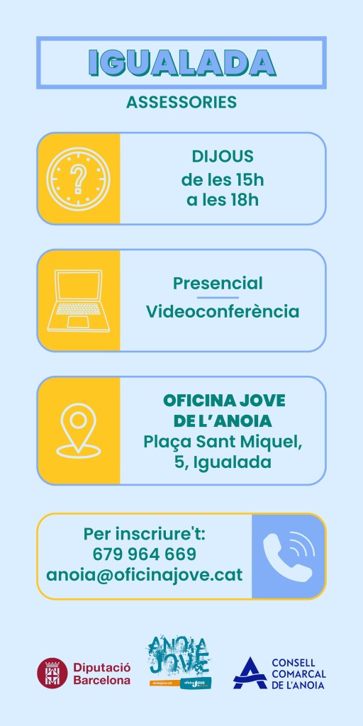 Oferim informació, mitjançant assessories personalitzades o bé xerrades de grup. El nostre objectiu és que conegueu totes les opcions disponibles per a fer una estada en un altre país, ja sigui amb programes que oferim nosaltres mateixos (Erasmus+, Cos Europeu de Solidaritat, TLN Mobilicat) o bé donant informació que respongui a una altra necessitat personal: anar a estudiar o treballar a l’estranger, conèixer altres continents, anar a fer un voluntariat… tot el que tingui a veure amb la mobilitat internacional, és cosa nostra.